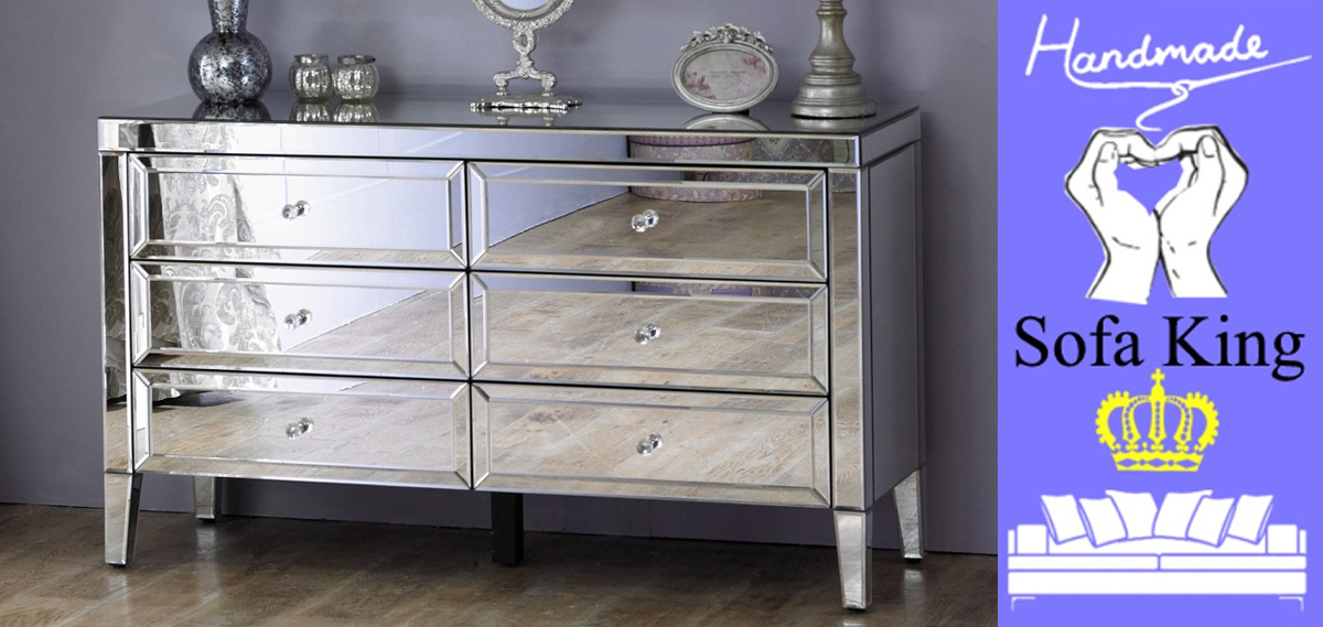 This stunning range features a mirrored finish with bevelled edges and elegant mock crystal handles
