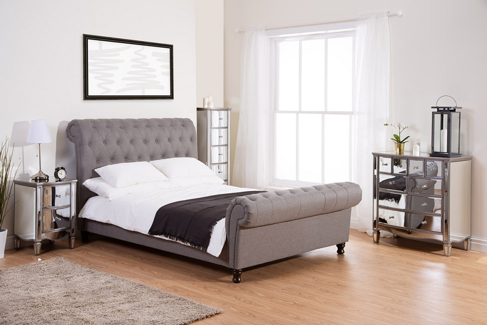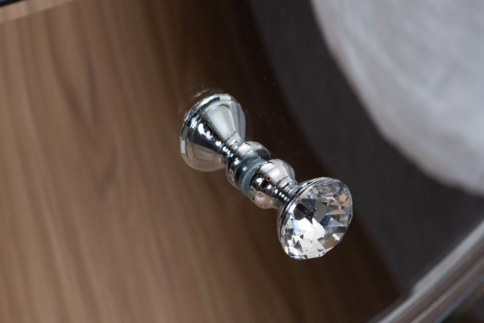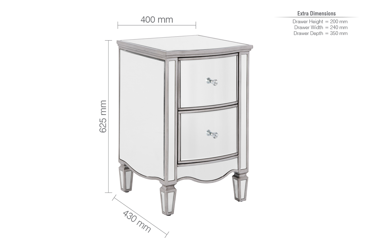 Elegantly made this 2 drawer bedside table is crafted in a clean, detailed design with a beautiful glass mirrored finish to provide a sense of space and light even in the dullest of rooms.
