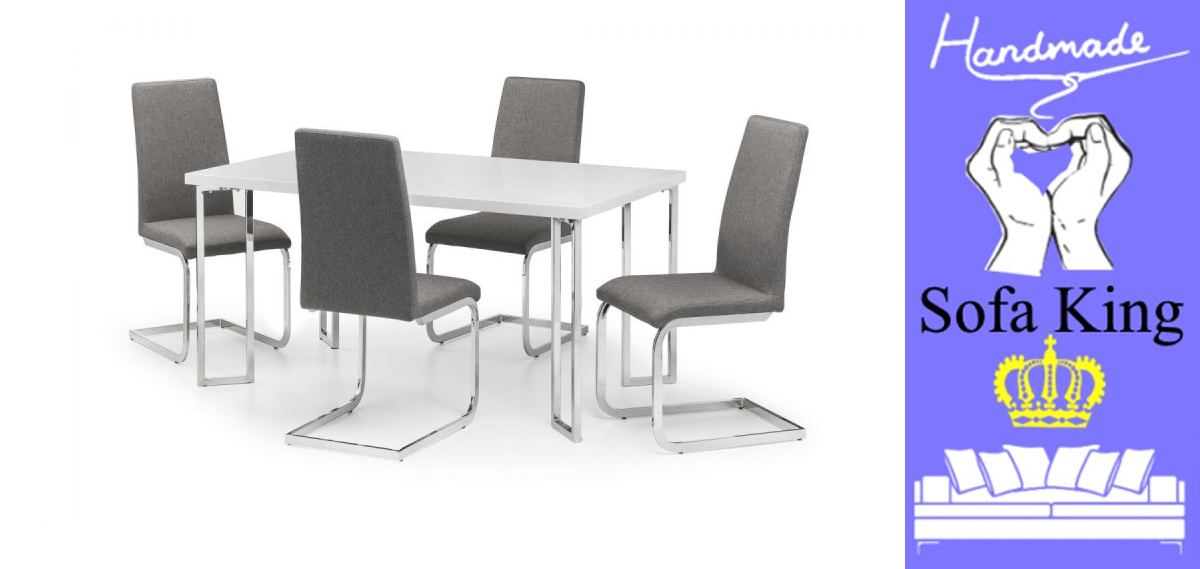 Manhattan: White High Gloss Dining Table + 4 Roma Chairs Set