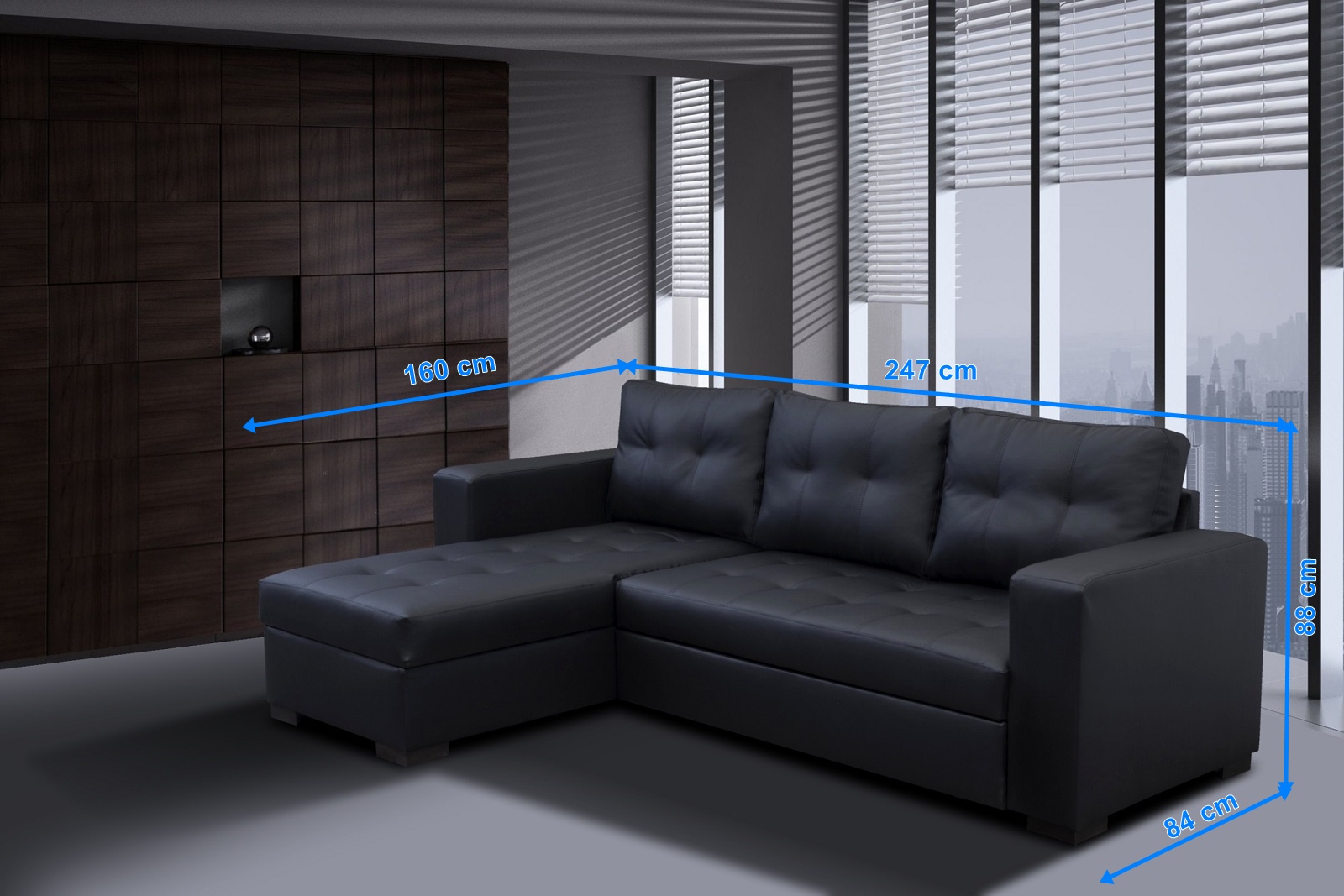 Tags: Monza II, Left Corner, Sofa Bed, Black PU