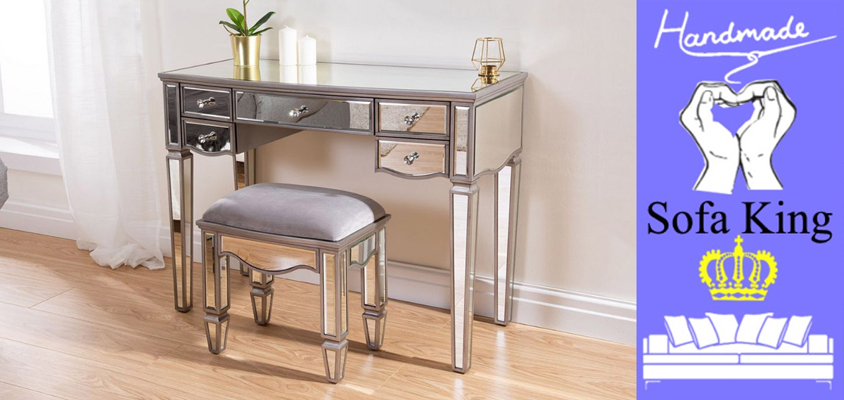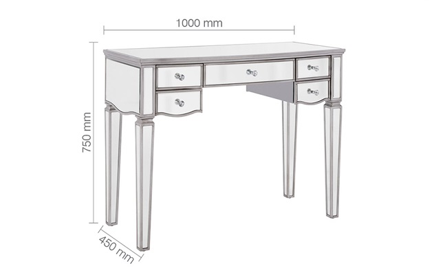 Elegantly made this 5 drawer dressing table is crafted in a clean, detailed design with a beautiful glass mirrored finish to provide a sense of space and light even in the dullest of rooms.