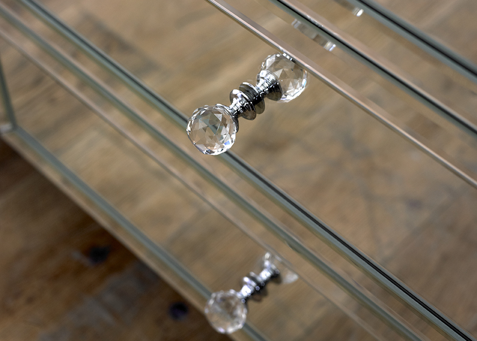 Constructed from a MDF frame this stunning range features a mirrored finish with bevelled edges and elegant mock crystal handles.